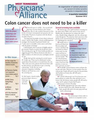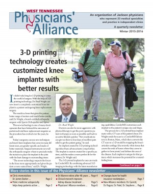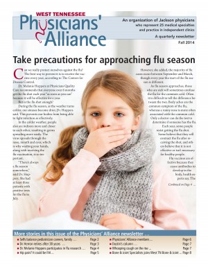 Each quarter, the West Tennessee Physicians' Alliance prints a newsletter with health stories from interviews with its physicians.